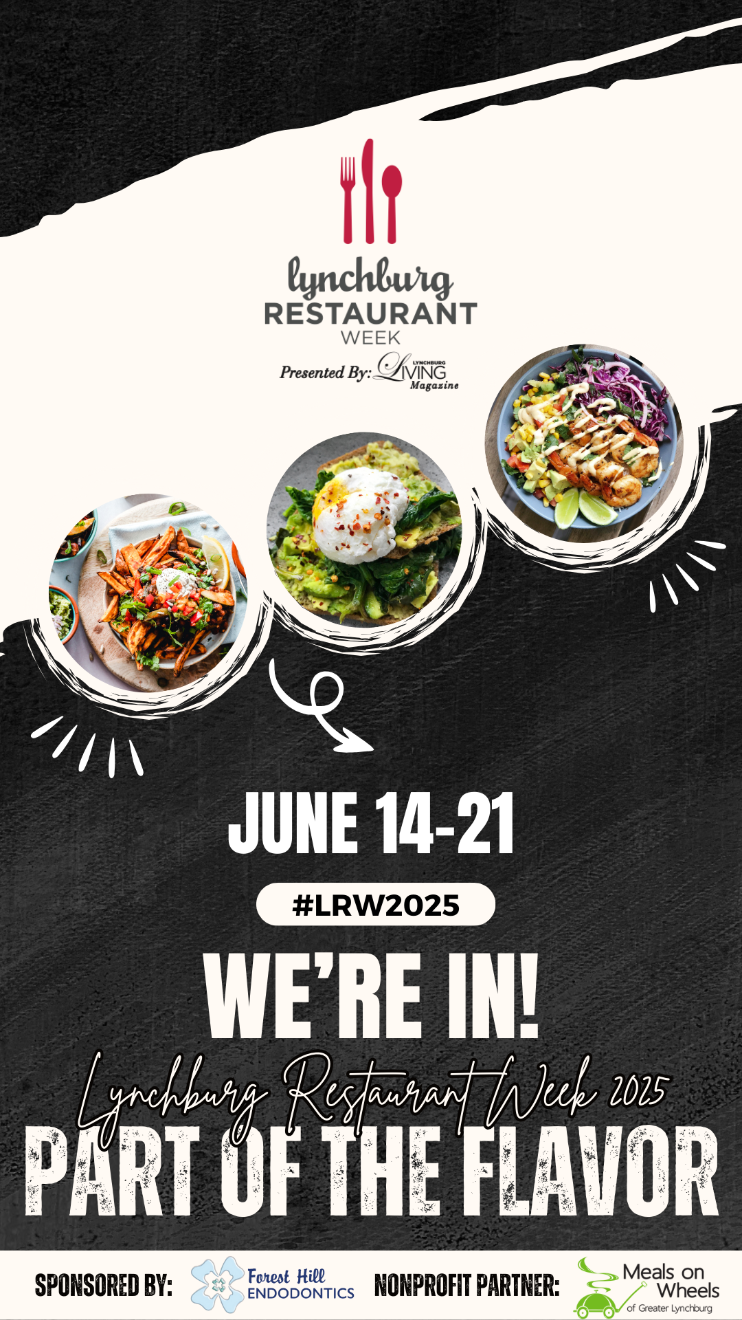 Thank you for participating in the 2025 Lynchburg Restaurant Week! We are so excited for patrons to come dine at your establishment and look forward to a week of culinary adventures. We have provided a promotional toolkit below so you can promote your participation on social media. Please use the hashtag #LRW2025 and tag us @lynchburgliving when sharing!